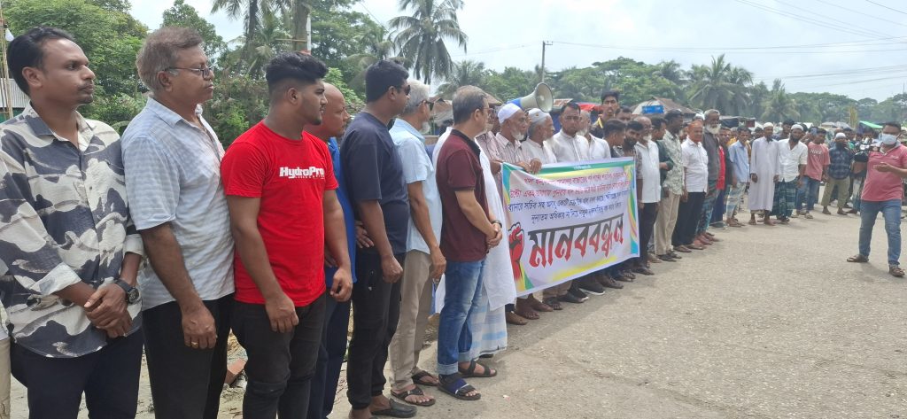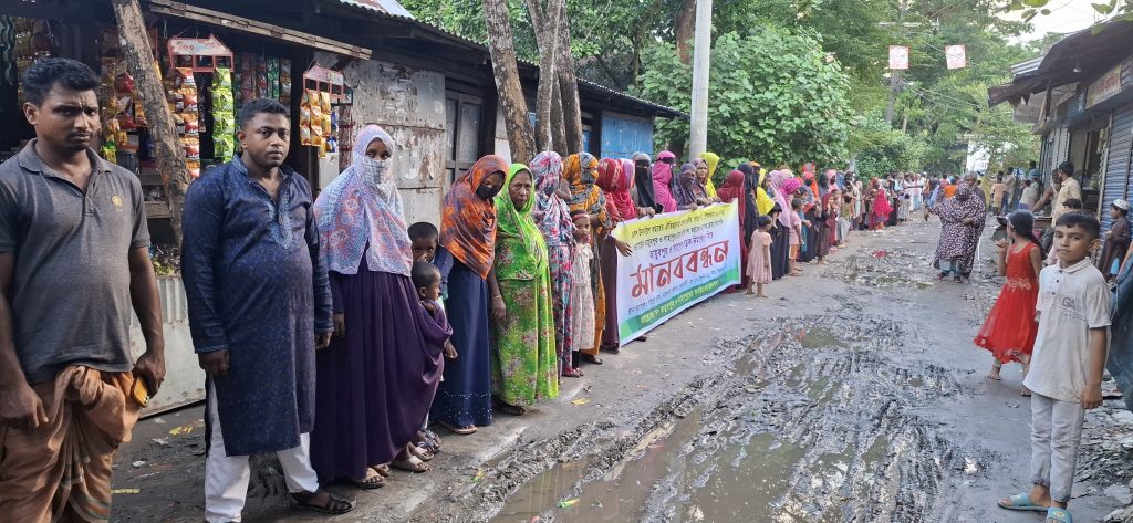 নোয়াখালী পৌরসভার তিনটি রাস্তা নির্মাণ ও সংস্কারের দাবিতে মানববন্ধন