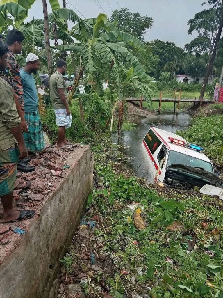 নোয়াখালীতে লাশবাহী অ্যাম্বুলেন্স পড়ে গেল খালে